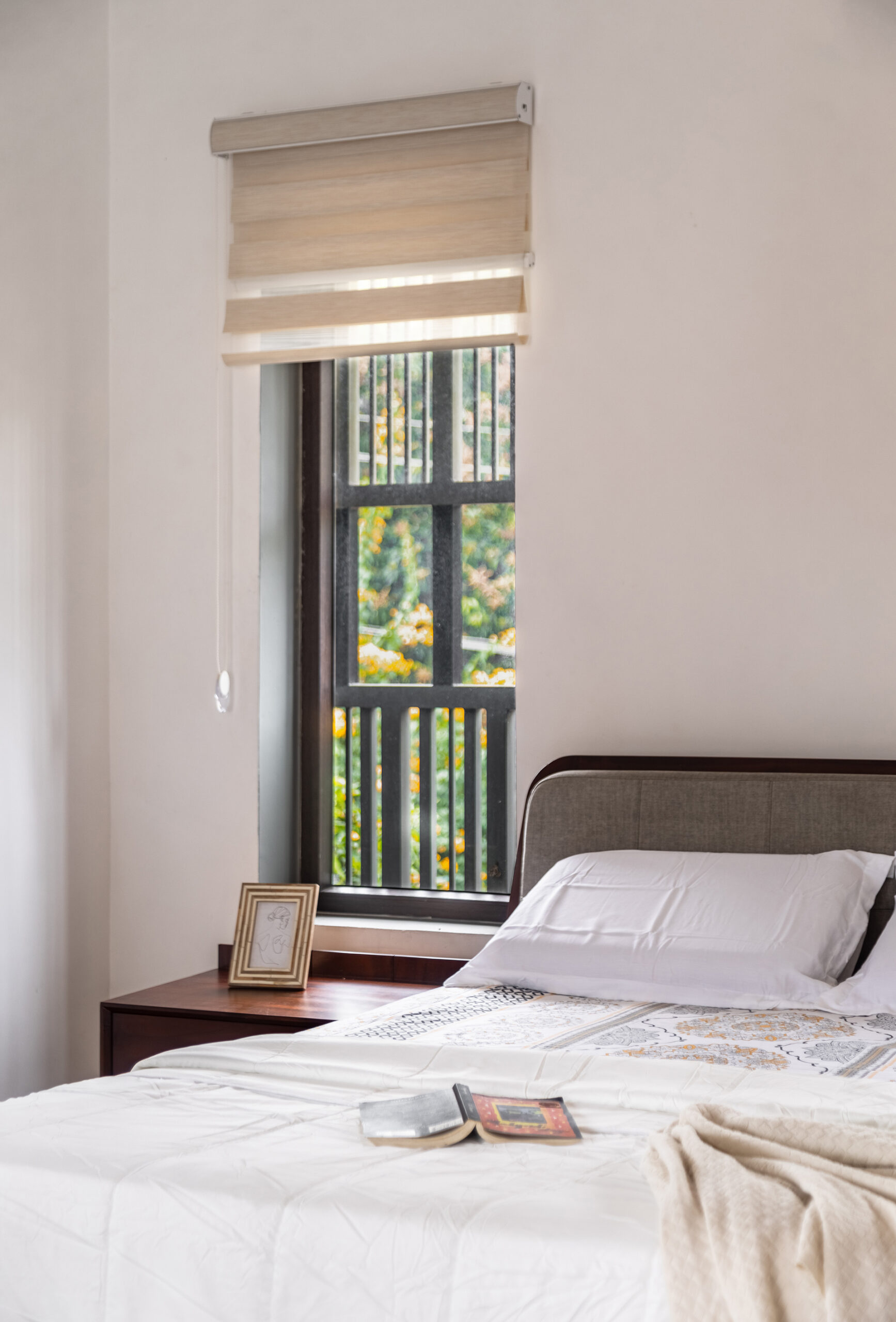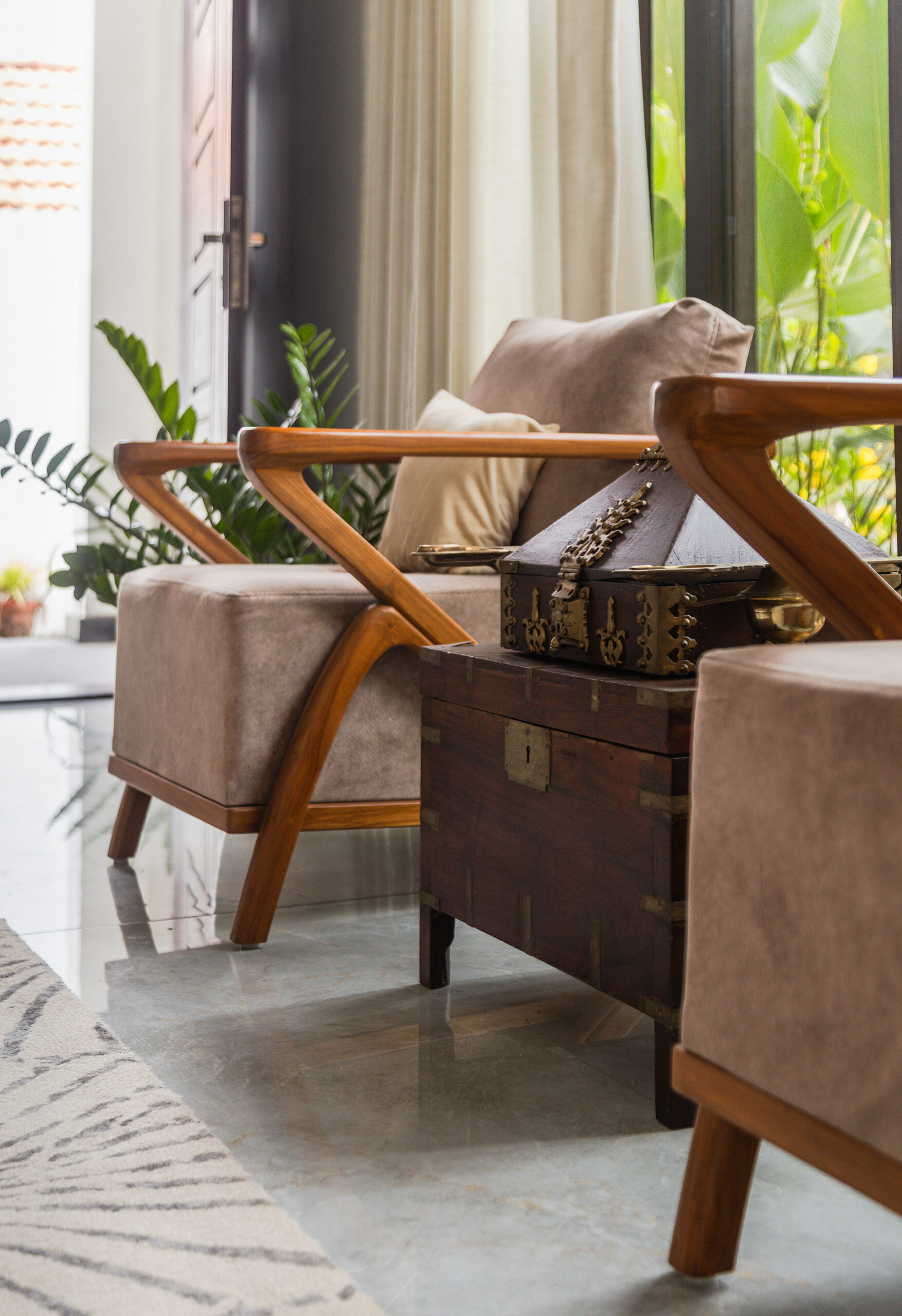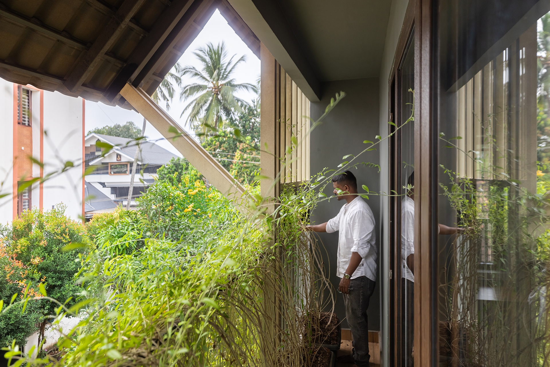 Poonkattu, is a serene and contemporary residence designed for Dr. Ajith and Parvathy in Kottayam. Nestled in a layout development, this iconic single-tiled roof abode seamlessly blends traditional elements with modern twists. The exterior façade, subtle and understated, belies the tranquil oasis within. Strategically placed openings frame the lush greenery outside, infusing the interiors with natural serenity. Inside, light-hued tones and bespoke wooden furniture create a warm, inviting atmosphere. Antique pieces add a touch of elegance, reflecting the owners’ refined taste. Well-planned ventilation ensures a constant flow of fresh air, echoing the name “Poonkattu” and creating a comfortable living space. “Poonkattu” is a haven where modernity meets tradition, and nature’s beauty is woven into every detail.